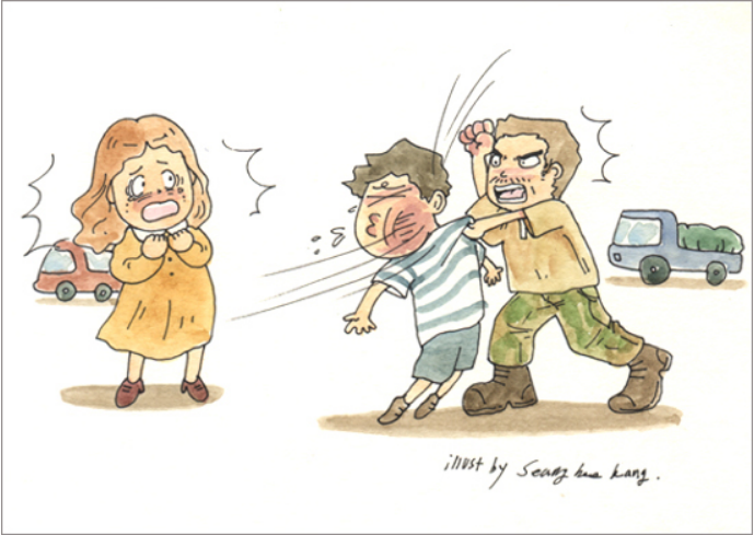 한 남자의 멱살을 잡고 일으켜 세우더니